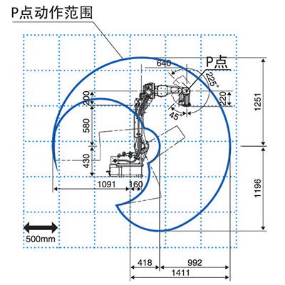 | 機器人動作范圍截面面積 | 2.94m2x340° | |